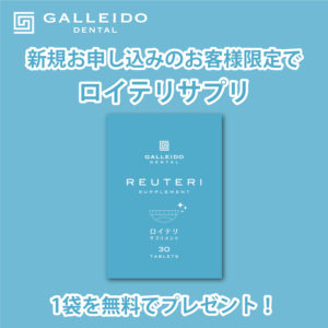 期間中、GALLEIDO DENTAL MEMBERを下記リンクよりお申し込みの新規お申し込みの方限定で、GALLEIDO DENTAL ロイテリ サプリメントを1袋プレゼントします。